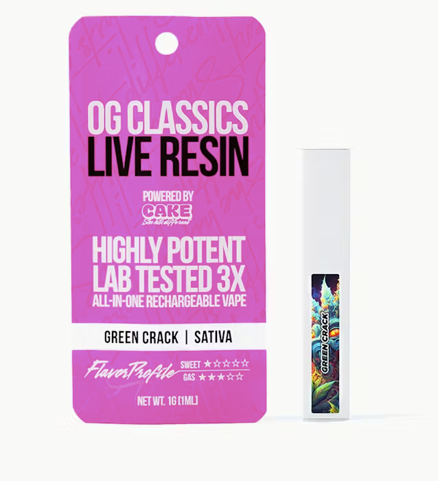 OG Classics Live Resin products are positioned as highly potent and lab tested, and this cake og classics disposable keeps that same focus. If you want an OG Classics All in One Rechargeable Vape with classic Green Crack energy, this one checks the box.